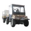 Dimensions: Overall length: 116in. (2,950mm) Overall width: 62in. (1,580mm) Overall height: 72in. (1,830mm) Wheelbase: 78in. (1,990mm) Front track: 48in. (1,220mm) Rear track: 47in. (1,200mm) Ground clearance: 11.6in. (295mm)Engine: Type: 2 cylinders,4-stroke,liquid-cooled Bore x stroke: 76mm x 71mm Displacement: 644cc Compression ratio: 8.4:1 Carburetor: BJH101E Max. power: 20.6kW/5,300rpm Maximum torque: 44/2,700 3,300N.m/r/min Starting: electric Ignition: CDI Lubrication: force and splash Transmission: manual clutch,4-shift/reverse Spark plug: F6T or F6TC Fuel type: RQ93 (unleaded) Lubricate oil: SAE-15W/30Capacities: Turning radius: 157.5" (4,000mm) Fuel tank: 30.0L Engine oil: 2,900ml Coolant: 4,000ml Starting: <5s Climbing: 20'- 25' Battery: 12V,52Ah Head light: 12V,80W/both Tail light: 12V 52W/both Fuse: 35A Max. speed: 35 miles/h Max. load capacity: 400kgChassis: Brake: hydraulic disc both on front and rear,right foot control Front tire: 25x10-12 Rear tire: 25x10-12 Suspension: independent dual A-arm both front and rear Drive train: 2WD/4WD shaft controllable Conveyance: Carton size(mm):2900x1550x1200 shipping info:4pcs(20' FCL)/8pcs(40' FCL) N.W./G.W.: 665kg /710kgOption: Window shield,door,CD player,trailer